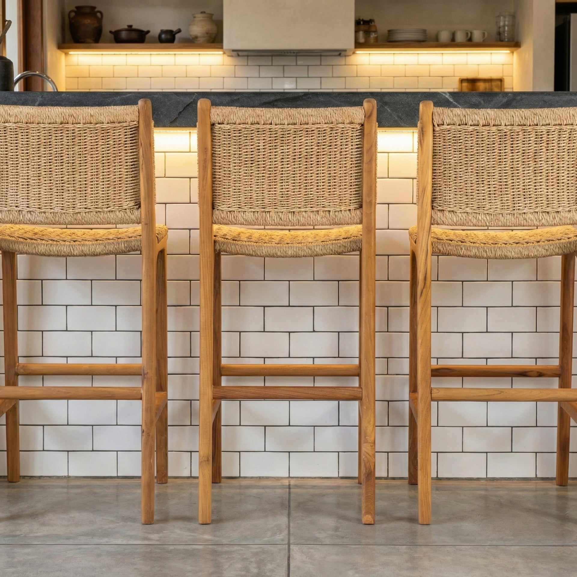 Yewforge Counter/Bar Chair Stool | Premium Teak Wood & Rattan