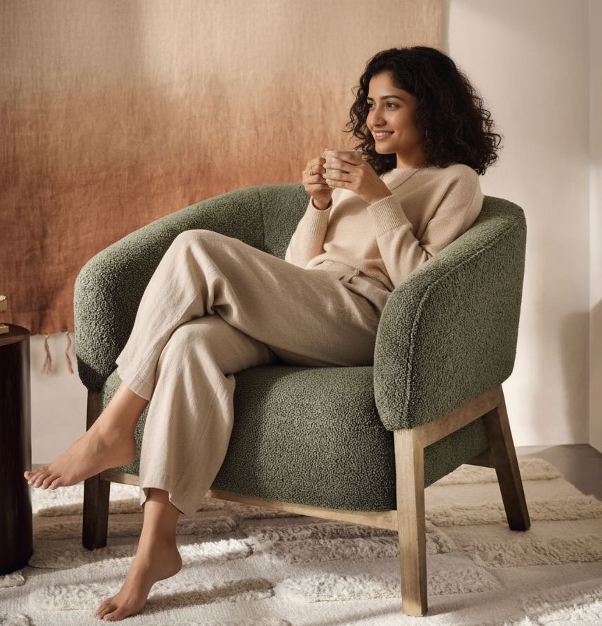 Mind Accent Chair | Green Boucle | Premium Teak Wood