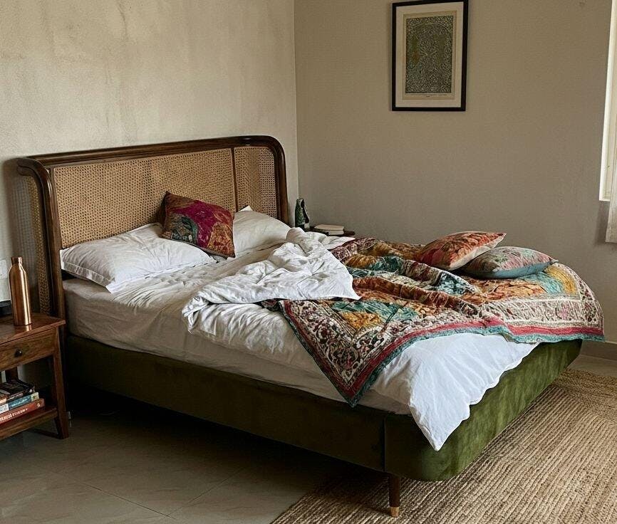 The Equinox Rattan Cage Platform Bed | Sheesham Wood